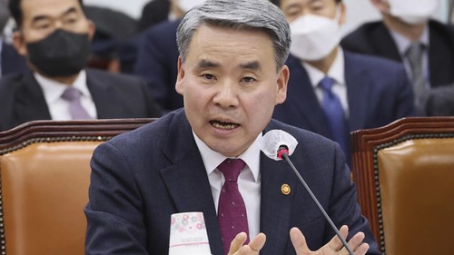 Bộ trưởng quốc phòng Hàn Quốc Lee Jong-sup điều trần trước Ủy ban Quốc phòng của Quốc Hội ngày 17/02/2023, tại Seoul, Hàn Quốc. AP - Lee Jung-hoon