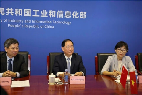Bộ trưởng Công nghiệp Công nghệ Trung Quốc Kim Tráng Long gặp một đoàn Việt Nam ở Bắc Kinh, 30/9/2024.