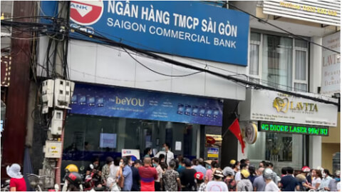 Ngày 8/10, khách hàng đã tràn ngập các chi nhánh của SCB để đòi rút tiền tiết kiệm, khi tin đồn lan truyền trên mạng xã hội rằng ngân hàng có thể gặp khó khăn.