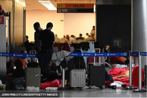 Ảnh chụp ngày 23/8 cho thấy hành khách Ấn Độ và Việt Nam đang mắc kẹt tại sân bay quốc tế São Paulo Guarulhos (Brazil).