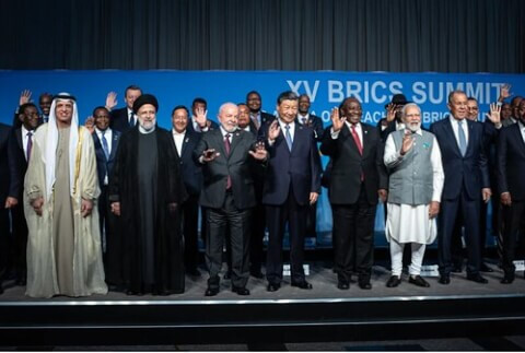 Các nhà lãnh đạo và đại diện BRICS, bao gồm các đại biểu từ sáu quốc gia được mời tham gia hội nghị thượng đỉnh BRICS được tổ chức tại Johannesburg ngày 24/8/2023. Ảnh Per-Anders Pettersson