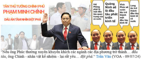 "Nếu ông Nguyễn Xuân Phúc – tiền nhiệm của ông Chính – thường xuyên khuyến khích các ngành, các địa phương trở thành ‘đầu tàu’… thì ông Chính – nhân vật kế nhiệm – lại rất yêu ‘đột phá’. Không chỉ động viên các ngành, các địa phương ‘đột phá’, ông Chính còn khuyên các doanh nghiệp ngoại quốc đầu tư vào Việt Nam (FDI) tham gia ‘đột phá’ nếu muốn phát triển. Thậm chí ông Chính còn đề nghị những quốc gia khác nên cùng Việt Nam ‘đột phá" !