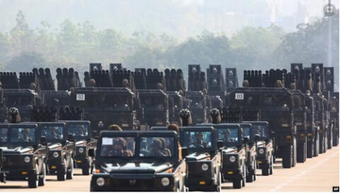 Xe quân sự diễn hành ở Naypyitaw, Myanmar.