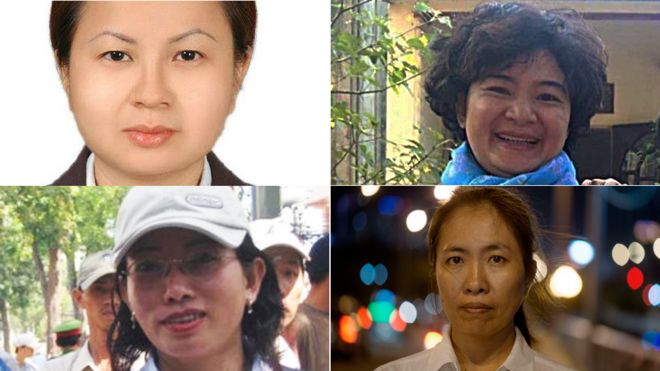 Một số nữ tù nhân lương tâm của Việt Nam. Từ trái quá phải, Lê Thị Công Nhân và Trần Thị Nga (hàng trên) ; Tạ Phong Tần và Nguyễn Ngọc Như Quỳnh (hàng dưới).
