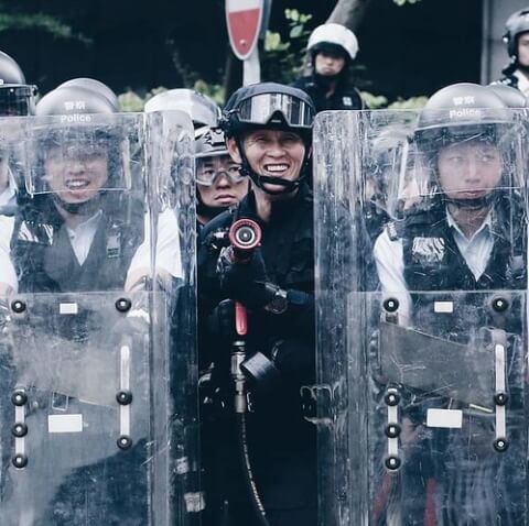 Trong một tweet của Hoàng Chí Phong gần đây, anh gửi lên một tấm ảnh về lực lượng trấn áp mặc áo đen, có chỉ dấu riêng. Đây là lực lượng bị nhiều người Hồng Kông thắc mắc vì đó là những người đánh đập người biểu tình tháng 6/2019, hết sức tàn bạo. Đánh đến mức mà cảnh sát áo xanh quen thuộc của Hồng Kông phải chạy đến can.