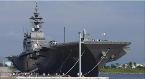 Đó là chiếc JS Kaga (DDH-184), trên danh nghĩa chỉ là một khu trục hạm, nhưng trong thực tế là một tàu chở trực thăng cỡ lớn, mà Nhật Bản có kế hoạch cải biến thành một tàu sân bay nhỏ, được trang bị loại chiến đấu cơ F-35B của Mỹ. Tháp tùng theo chiếc Kaga là khu trục hạm JS Ikazuchi (DD 107) và tàu ngầm JS Shoryu (SS 510).