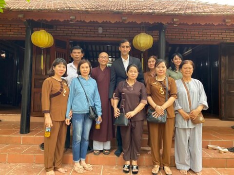 Hòa thượng Thích Vĩnh Phước (giữa) và tùy viên chính trị ĐSQ Hoa Kỳ cùng thân nhân TNLT tại chùa Phước Bửu - Fb Trung Kiên Phước