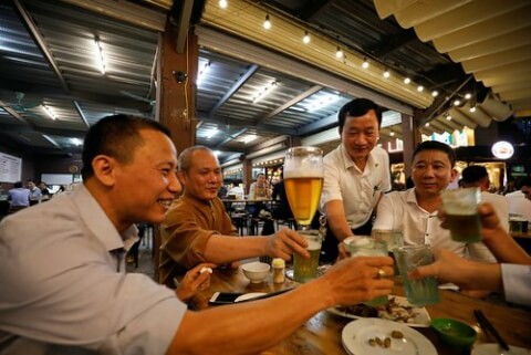 Quy trình làm việc của cấp trên xuống cấp dưới, đặc biệt ở những vùng nông thôn, nhất là nếu "Trung ương" về, hầu như bất di bất dịch : Sáng làm việc kéo dài đến trưa, chủ nhà mời khách ra nhà hàng ăn cơm trưa. Nếu làm việc cả ngày thì nhất định có tiệc tối, bia rượu phủ phê.