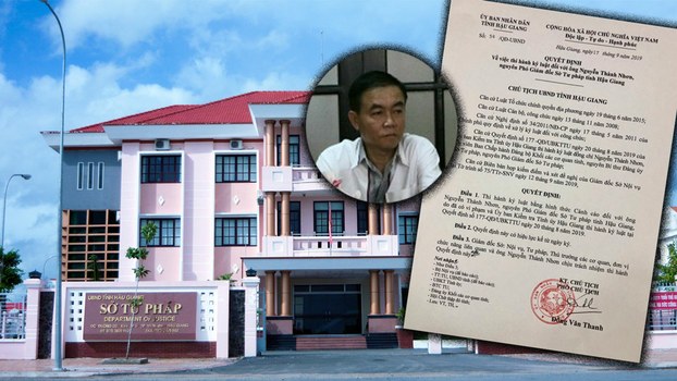 Ông Nguyễn Thành Nhơn nguyên phó giám đốc Sở Tư pháp Hậu Giang và quyết định kỷ luật. RFA Edited