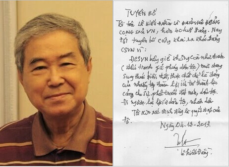 Trong đêm trường của thể chế công an trị, đốm lửa của tổ chức dân sự có tên ‘Câu lạc bộ Lê Hiếu Đằng’ vẫn không tắt. Thư tuyên bố từ bỏ Đảng cộng sản của ông Lê Hiếu Đằng. Ảnh minh họa