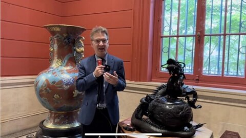Ông Eric Eric Lefebvre, giám đốc Bảo tàng Cernuschi giới thiệu với RFI Tiếng Việt về triển lãm Retour d’Asie. Henri Cernuschi, un collectionneur au temps du japonisme (Từ Châu Á trở về. Henri Cernuschi, nhà sưu tập thời trào lưu Nhật Bản) từ ngày 06/10/2023 đến 04/02/2024, Paris, Pháp © RFI / Thu Hằng