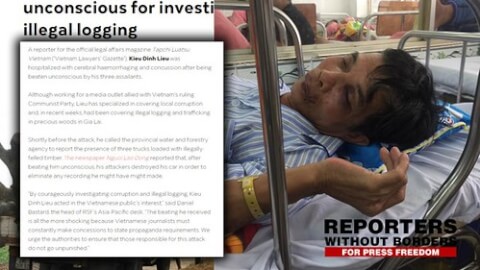 Trở lại vụ việc nhà báo Kiều Đình Liệu bị hành hung đến xuất huyết não hôm 26 tháng 9, Tổ chức Phóng viên Không Biên giới (RSF) vào ngày 2 tháng 10 ra thông cáo báo chí thúc giục giới chức Việt Nam phải tìm và trừng phạt những kẻ đã hành hung nhà báo Kiều Đình Liệu. Ông Daniel Bastard, đại diện khu vực Châu Á Thái Bình Dương của RSF còn lên tiếng rằng "Việc điều tra tham nhũng và chuyện chở gỗ lậu của nhà báo Kiều Đình Liệu đã hành động vì lợi ích của cộng đồng và việc ông bị đánh đập gây ngạc nhiên nhiều hơn nữa, bởi vì các nhà báo Việt Nam phải thường xuyên tuân thủ các yêu cầu về tuyên truyền của nhà nước".