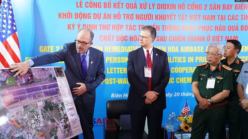 Đại sứ Mỹ tại Hà Nội Daniel Kritenbrink và Thứ trưởng Bộ Quốc phòng Nguyễn Chí Vịnh công bố kết quả của một phần trong cam kết hướng tới giải quyết các di sản chiến tranh giữa hai cựu thù tại một buổi lễ được tổ chức ở Biên Hoà, Đồng Nai, hôm 20/1, theothông báo của Đại sứ quán Mỹ tại Việt Nam.