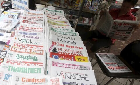 Một sạp báo trên đường phố Hà Nội. Reuters