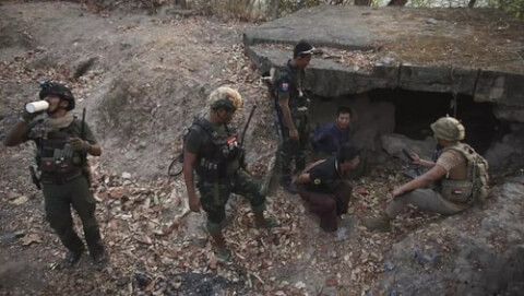 Miến Điện : Lính của lực lượng thiểu số Karen thu thập vũ khí và đạn dược sau khi kiểm soát đồn ở Myawaddy. Ảnh ngày 11/03/2024. AP