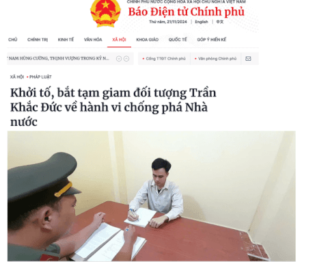 Tập hợp Dân chủ Đa nguyên : Chí hữu Trần Khắc Đức không phải là nạn nhân đầu tiên của Điều luật 117 tùy tiện !