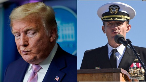 Tổng thống Donald Trump tại cuộc họp báo hôm 4/4/2020 và Đại tá Hải quân Brett Crozier, chỉ huy của tàu sân bay USS Theodore Roosevelt đã bị cách chức.