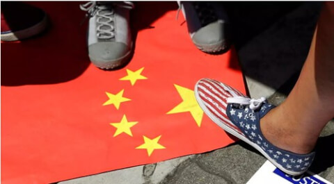 Người biểu tình ở Manila ngày 21/06/2019 dẫm lên cờ Trung Quốc để phản đối sự kiện một tàu Trung Quốc tấn công tàu Philippines. © AP Photo/Aaron Favila, File