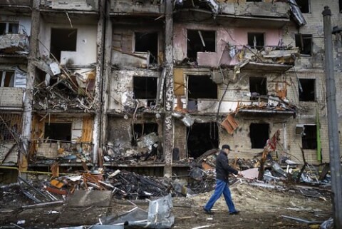 Một khu dân cư ngoại ô thủ đô Kiev của Ukraine bị quân đội Nga pháo kích tấn công