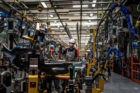 Dây chuyền lắp ráp xe hơi ở Chiết Giang Trung Quốc.