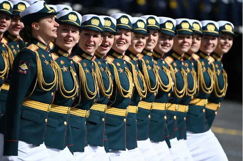 Các binh sĩ nữ của quân đội Nga trong cuộc duyệt binh thường niên trên Quảng trường Đỏ, Moskva, năm 2019. © Maksim Konstantinov / SOPA Image - SOPA Images