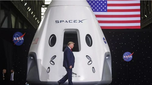Tổng thống Mỹ Donald Trump sau khi xem phóng phi thuyền Crew Dragon lên không gian ngày 30/05/2020 tại Cape Canavera, Florida, Hoa Kỳ. Reuters - Jonathan Ernst