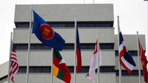 Quốc kỳ bên ngoài tòa nhà ASEAN tại Indonesia. Hình minh họa.