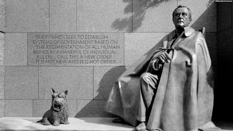 Roosevelt không thể tiếp tục ủng hộ một thế giới trật tự như thế nữa. Viễn kiến của Roosevelt là : một, phải làm cho Trục Quyền (Axis powers, gồm Đức Ý Nhật) đầu hàng hoàn toàn vô điều kiện ; hai, phải yêu cầu Anh quốc và Pháp quốc không tái xây dựng đế quốc của họ khắp nơi như trước đây. Theo Roosevelt, thì cần phải xây dựng một thế giới mà tự do và quyền tự quyết quốc gia có tác dụng bao quát hơn ; ba, Roosevelt mong muốn một thế giới có tự do mậu dịch, thương mại, nhưng cũng cần dựa trên luật lệ rõ ràng và cơ cấu hẳn hoi để qua đó, các bất đồng hay tranh chấp chính trị có thể được giải quyết một cách ôn hòa.