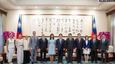 Tổng thống Đài Loan Lại Thanh Đức tiếp phái đoàn thăm do cựu Đại diện thường trực Hoa Kỳ tại Liên hợp quốc Nikki Haley dẫn đầu tại Phủ Tổng thống ở Đài Bắc, ngày 22/8/2024. (Ảnh từ trang web của Văn phòng Tổng thống Đài Loan)
