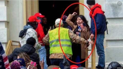 Các công tố viên liên bang Hoa Kỳ dẫn hình ảnh video cho thấy cô Nhi Ngoc Mai Le tham gia vụ tấn công Điện Capitol Hoa Kỳ vào ngày 6 tháng 1 năm 2021. (Ảnh : Hồ sơ tòa án liên bang Hoa Kỳ)