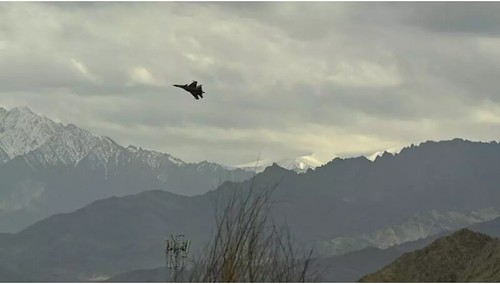 Chiến đấu cơ Ấn Độ trên không phận vùng Ladakh có tranh chấp biên giới với Trung Quốc ngày 24/06/2020. AFP - TAUSEEF MUSTAFA
