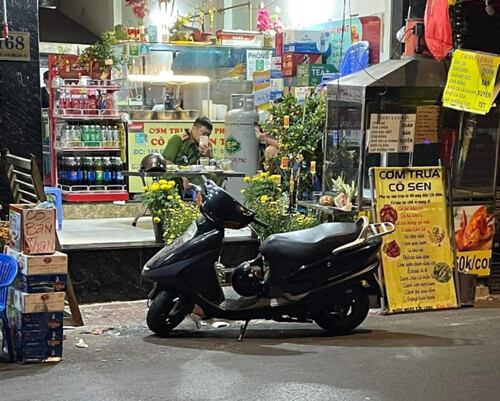 Hình ảnh được cho là viên công an tên Phồn đang ngồi ăn uống tại quán - Photo : facebook Pham Minh Vu