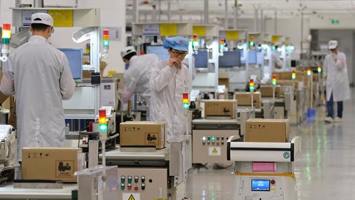 Một dây chuyền chế tạo điện thoại di động Hoa Vi, tại Đông Hoàn, Quảng Đông, Trung Quốc. (Ảnh chụp ngày 25/03/2019) Reuters/Tyrone Siu/File Photo