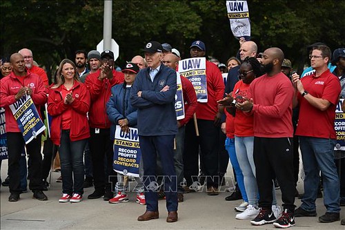 Lần đầu tiên một nguyên thủ Mỹ đương nhiệm đến ủng hộ công nhân ngành công nghiệp xe hơi đình công. Hôm 26/09/2023, tổng thống Joe Biden đến thăm công nhân tại một nhà máy ở bang Michigan và đã tuyên bố : sau nhiều "hy sinh" trong giai đoạn khó khăn 2008, giờ đây, công nhân ngành xe hơi Mỹ xứng đáng được tăng lương. Hôm nay, đến lượt cựu tổng thống Trump cũng đến bang Michigan ve vãn cử tri trước khi chính thức lao vào cuộc vận động tranh cử.