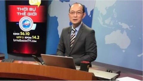 Nhà báo Hoàng Trọng Thụy trong một chương trình của đài Little Saigon, Quận Cam, California, Hoa Kỳ. Ảnh chụp ngày 04/02/2021. © RFI
