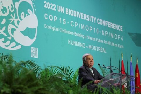 Tổng thư ký Liên hợp quốc Antonio Guterres có bài phát biểu khai mạc COP15, hội nghị thượng đỉnh về đa dạng sinh học của Liên hợp quốc kéo dài hai tuần, tại Montreal, Quebec, Canada.