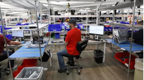 Nhân viên một nhà máy của General Motors lắp ráp máy trợ thở điều trị bệnh Covid-19, tại Kokomo, bang Indiana, Mỹ, ngày 30/04/2020. Reuters - CHRIS BERGIN