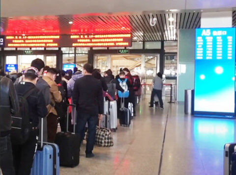 Hành khách tại Ga đường sắt Hán Khẩu – một trong ba nhà ga chính ở thành phố Vũ Hán, vào ngày 8/4, ngày lệnh phong tỏa thành phố được chính thức dỡ bỏ