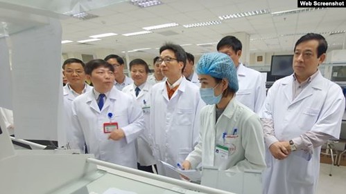 Phó thủ tướng Vũ Đức Đam kiểm tra công tác phòng, chống dịch viêm đường hô hấp cấp do virus corona. Photo QDND