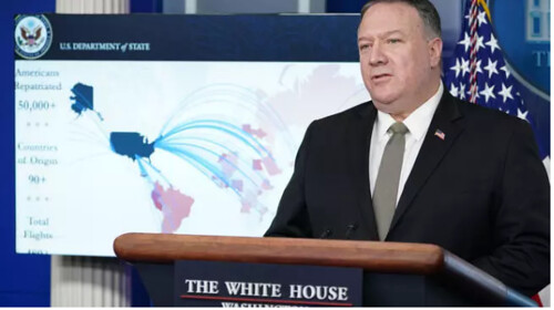 Một ngày trước, nhật báo Washington Post khẳng định là đại sứ Mỹ tại Trung Quốc, cách nay hai năm, sau khi thăm một phòng thí nghiệm ở Vũ Hán, đã báo động bộ Ngoại Giao về tình trạng thiếu an toàn của viện nghiên cứu này. Theo tin riêng của FoxNew, siêu vi corona gây đại dịch lần này có nguồn gốc tự nhiên chứ không phải nhân tạo. Thứ hai là siêu vi lọt ra bên ngoài từ viện nghiên cứu thiếu an toàn này là do sơ suất của con người chứ không phải do cố tình. Ngoại trưởng Mỹ không phủ nhận hai tin này.