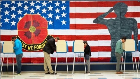 Một điểm bỏ phiếu của cử tri Mỹ. Khoảng một nửa số cử tri người Mỹ gốc Việt đã đăng ký là đảng viên Đảng Cộng hòa hoặc nghiêng về Đảng Cộng hòa, theo khảo sát mới của Pew.