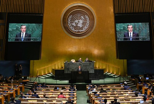Hình minh họa. Bộ trưởng Ngoại giao Trung Quốc Vương Nghị phát biểu tại Đại hội đồng Liên Hiệp Quốc hôm 27/9/2018 AFP