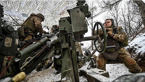Binh sĩ Ukraine chuẩn bị pháo M777 trên mặt trận ở vùng Zaporizhzhia, Ukraine, ngày 14/01/2024. Reuters - Stringer