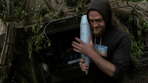 Một binh lính Ukraine chuyển đạn pháo tại một vị trí pháo binh gần Donetsk, Ukraine, ngày 22/05/2022. Reuters - CARLOS BARRIA