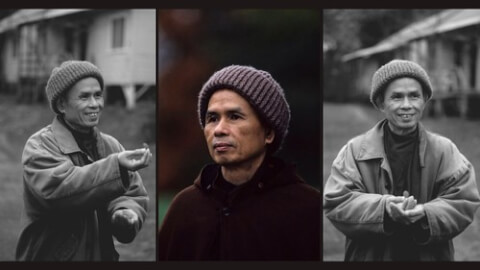 Thiền sư Thích Nhất Hạnh tại Làng Mai, nước Pháp vào năm 70 tuổi (1996). Ảnh : Simon Chaput.