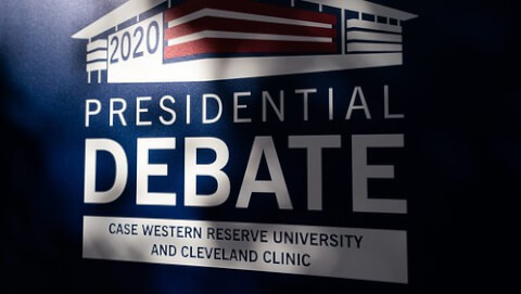 Tổng thống Donald Trump và ứng cử viên tổng thống đảng Dân chủ, cựu Phó Tổng thống Joe Biden, cùng với người điều khiển Chris Wallace của Fox News trong cuộc tranh luận tổng thống đầu tiên vào Thứ Ba, ngày 29 tháng 9 năm 2020, tại Đại học Case Western
