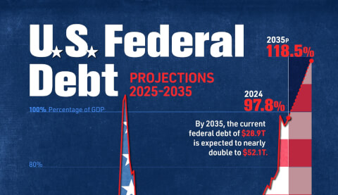 Một trong những vấn đề cấp bách nhất của Hoa Kỳ hiện nay là tình hình tài chính không bền vững vì nợ quốc gia tăng nhanh hơn là mức phát triển kinh tế. Nợ quốc gia hiện bằng 100% tổng sản phẩm quốc nội và được dự báo sẽ tăng nhanh chóng cả trong ngắn hạn và dài hạn.