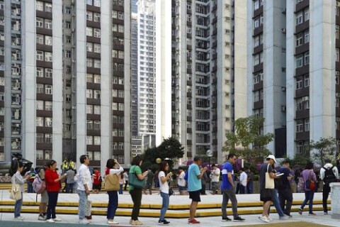 Hình : Người dân Hồng Kông xếp hàng đi bầu hội đồng cấp quận vào ngày 24/11/2019 (Nguồn : Vincent Yu/AP)