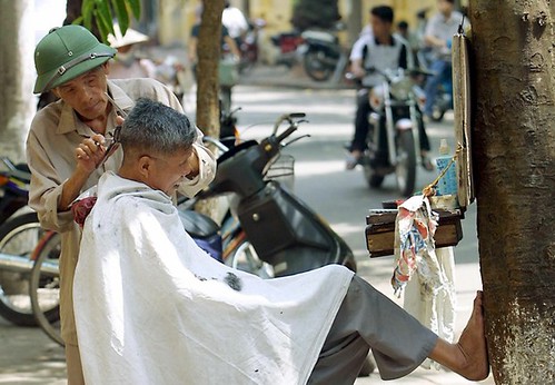 Ảnh minh họa : Người thợ hớt tóc cao tuổi vẫn còn làm việc tại Hà Nội, ảnh chụp trước đây. AFP