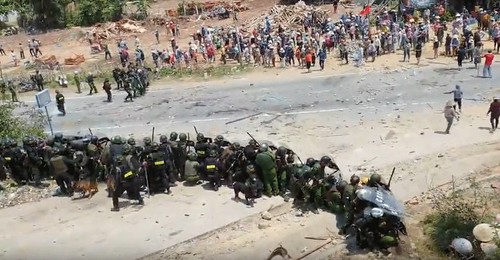 Ảnh chụp màn hình : Cảnh sát cơ động vây bắt người dân phản đối việc tập trung rác ở địa phương thôn La Vân, xã Phổ Thạnh, huyện Đức Phổ, tỉnh Quảng Ngãi hôm 13/3/2020 - Courtesy of FB